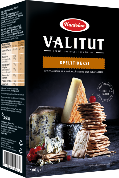 Spelttikeksi on nimensä mukaisesti spelttijauhosta leivottu ohut ja rapea keksi, jonka leivontaan on käytetty oliiviöljyä. Se sopii erityisen hyvin kitti-, valkohome- ja sinihomejuustojen kanssa. Palmuöljytön.